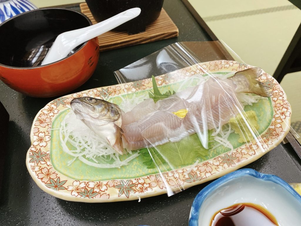 では醤油をかけてニジマスとブラウントラウトを交配して生まれた信州サーモン、頂いてみましょう!