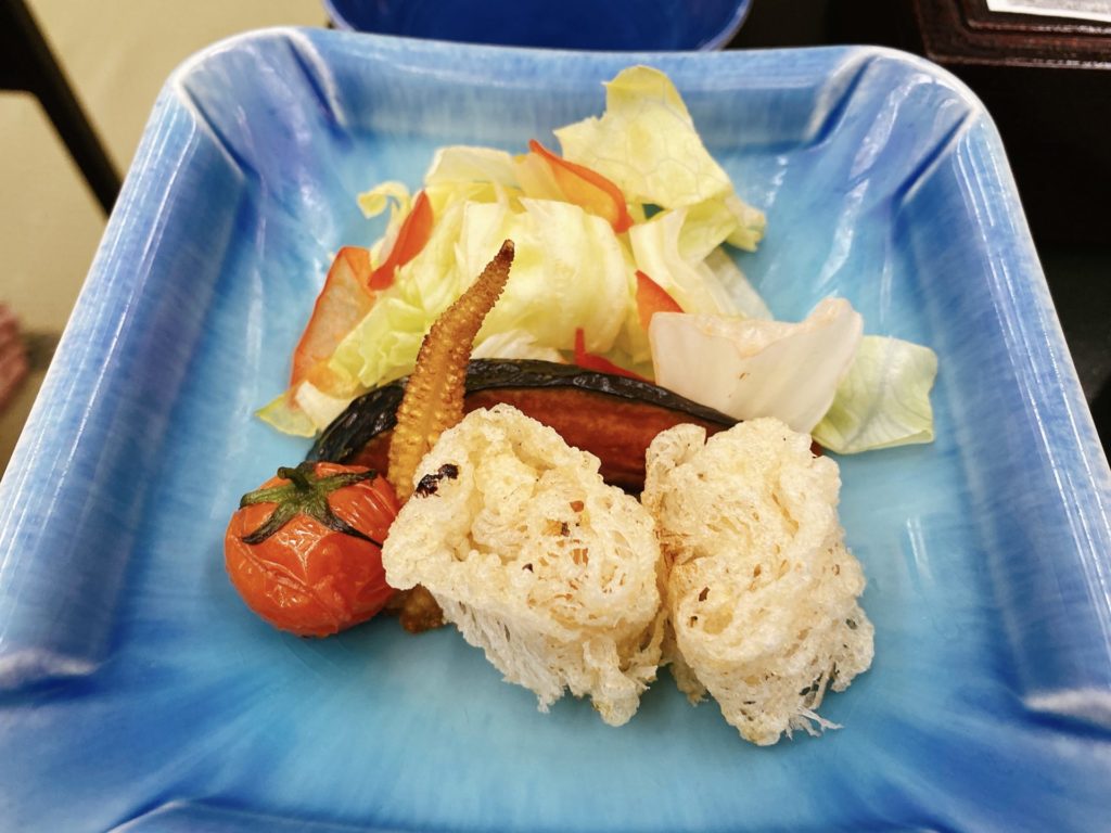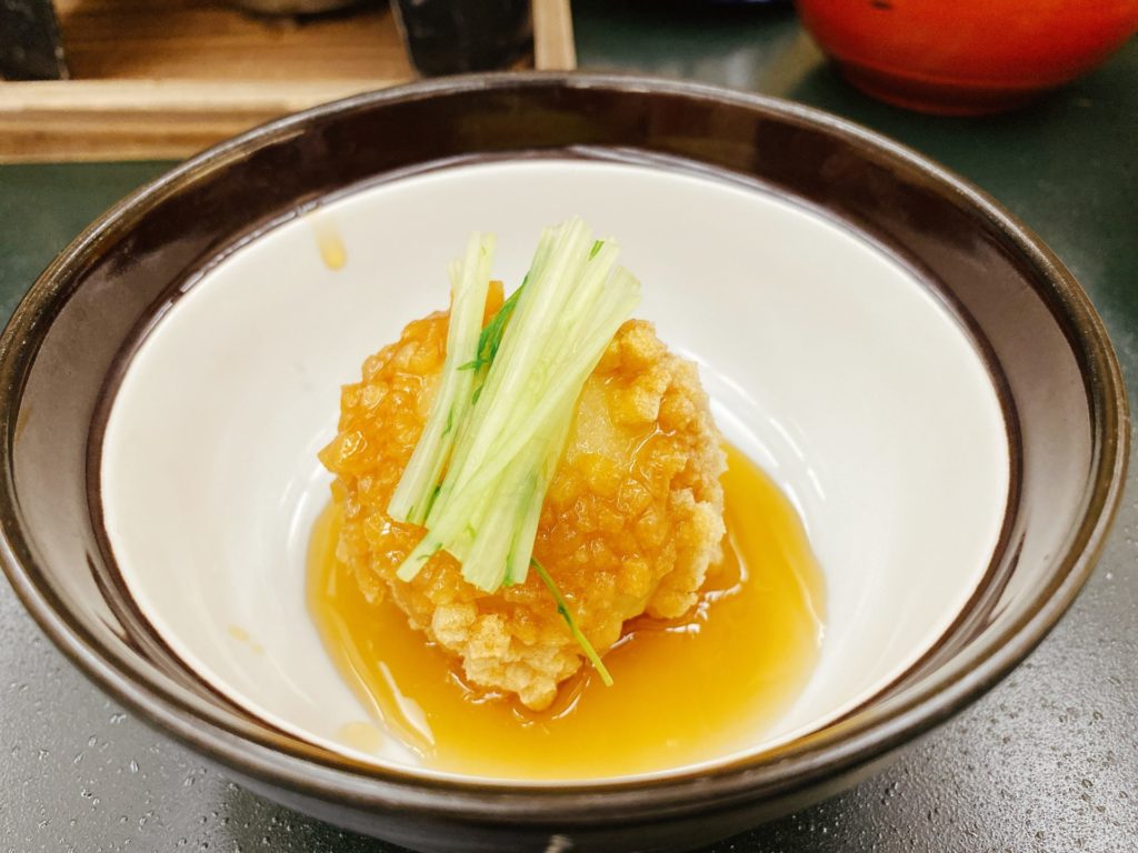 ※運んできてくれた時に、何の説明もなかったのでテーブルの醤油をかけましたが、途中でお盆に専用のつゆらしきものを発見した次第・・・・・