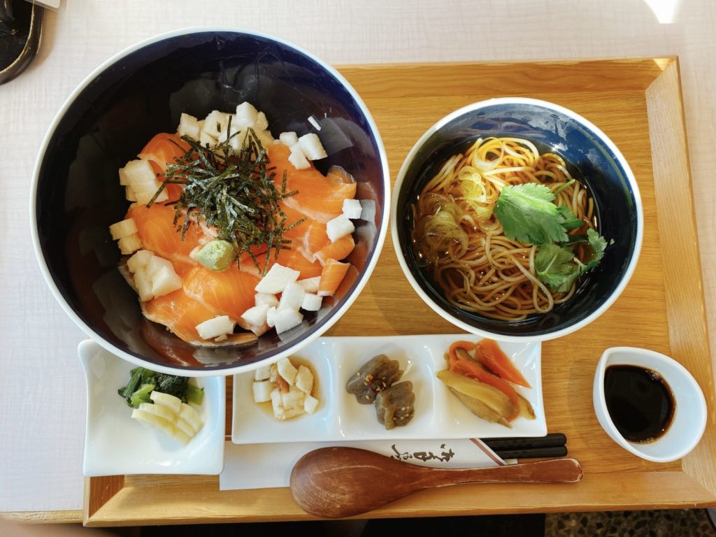 信州サーモンに信州そばの組み合わせ、最強のランチかな。