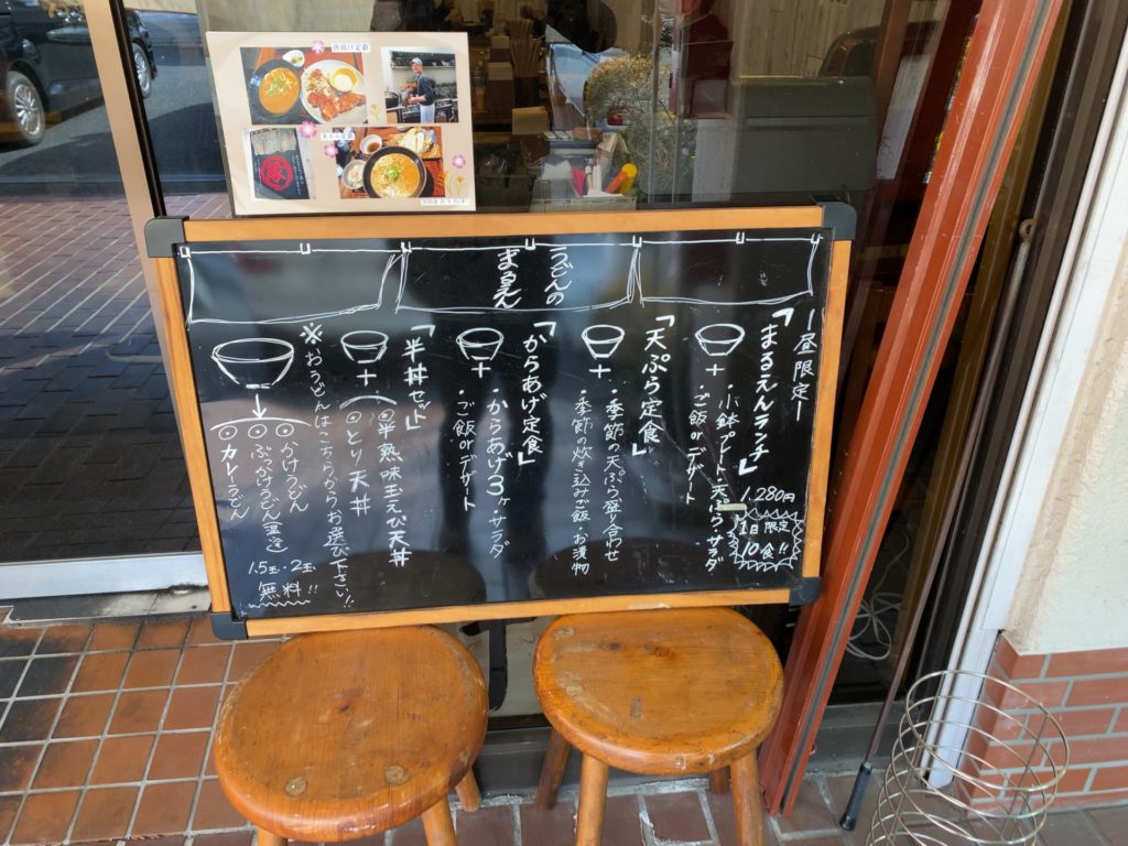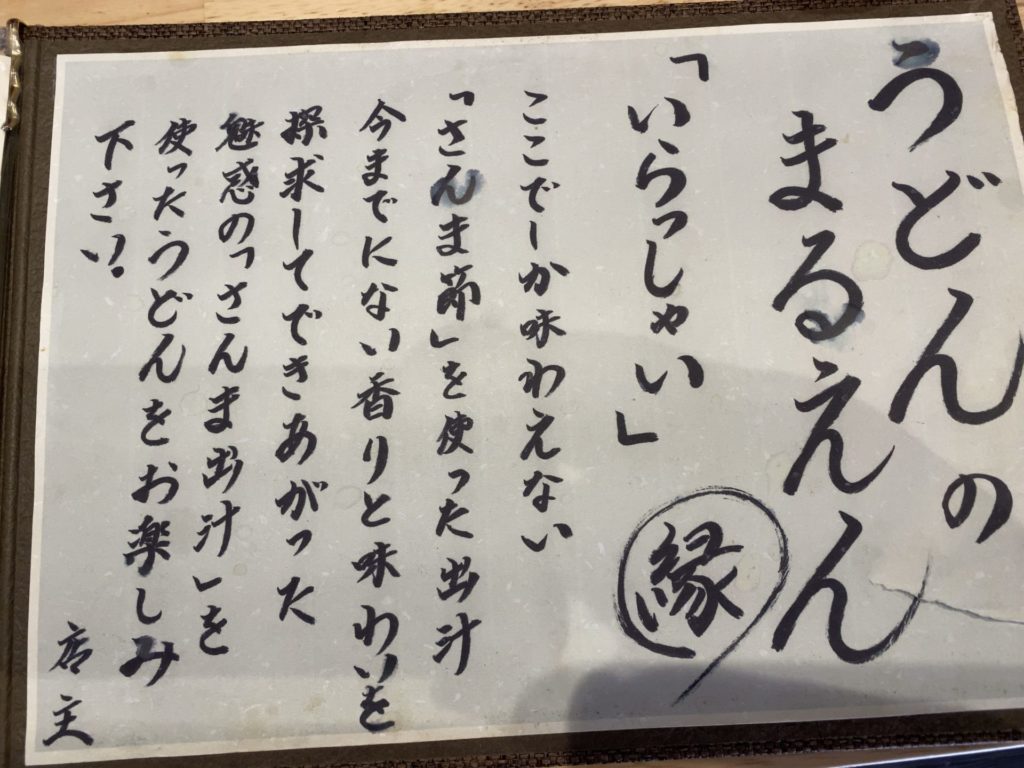 まるえんのうどん出汁はサンマ!カレーうどんが気になりつつも最初は「かけうどん」!オーダーは予定通り半丼セットで!