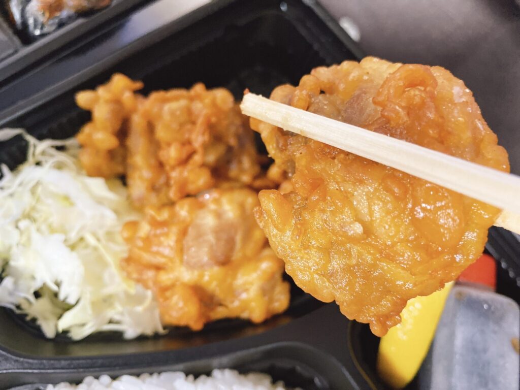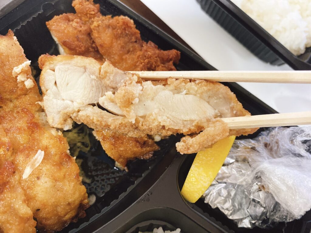 では、私はチキンカツ弁当を頂きますが、から揚げも1つ頂いちゃいます。