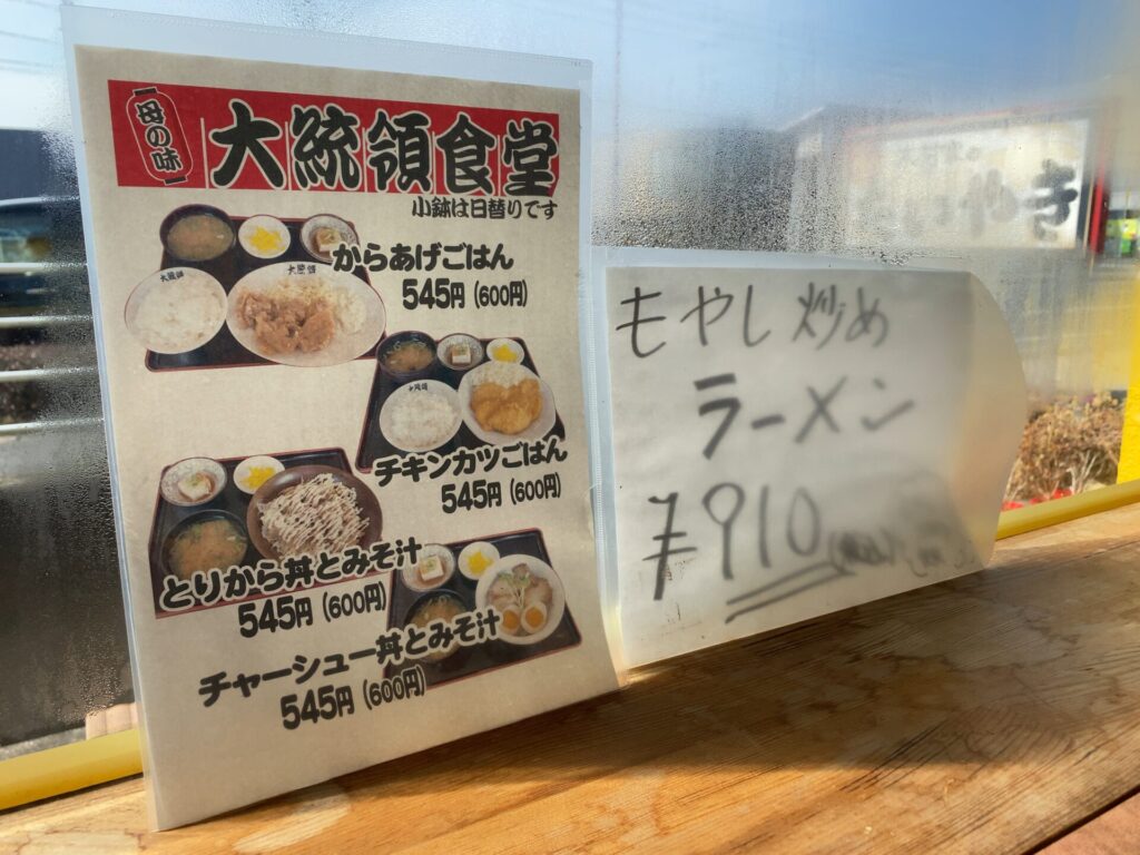 窓の所に、ラーメンの入らないこんな定食のメニューがあったり、