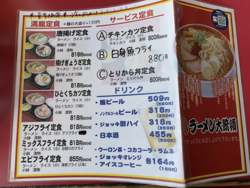 ラーメン大統領のランチはサービス定食がコスパもよくてオトク!ラーメンはとんこつ塩でオーダー!