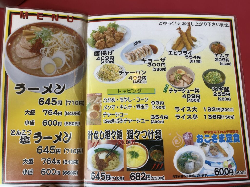 ラーメンは担々麺等がありつつも、基本はとんこつと、とんこつ塩の2種類のみ。