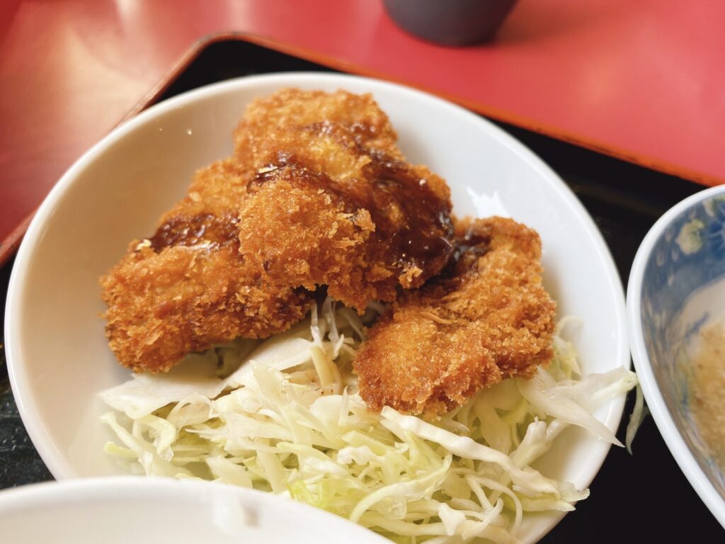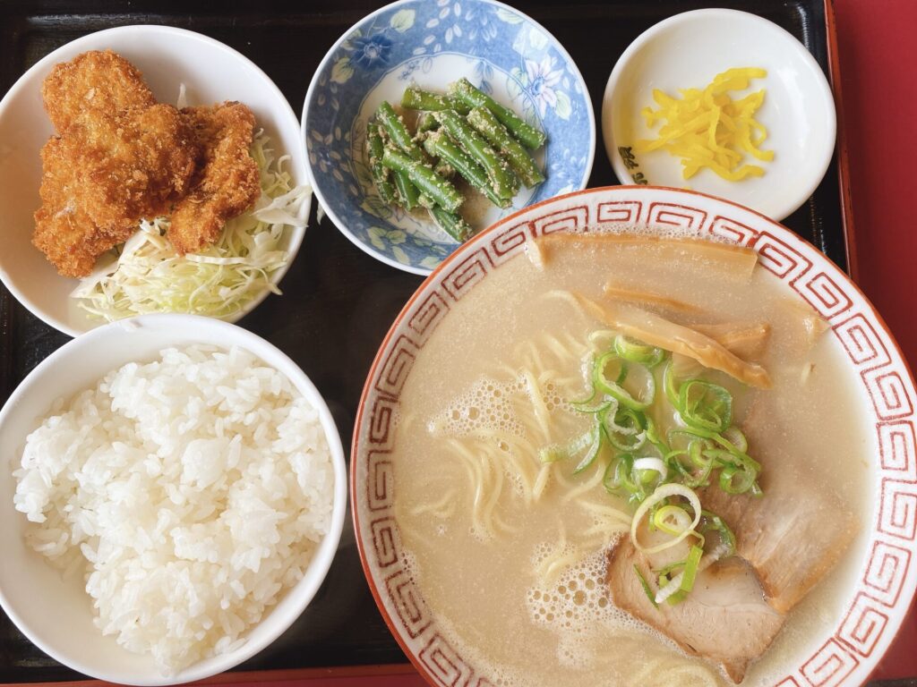 サービス定食には、ラーメンが入ってないものと勘違いして、満腹定食のひとくちカツ定食とんこつ塩にて注文しました。