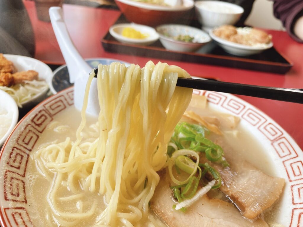 とんこつの味が濃いのに独特のニオイもなく、サラッとしたスープになっています。