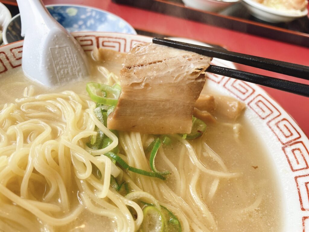 チャーシューも小ぶりながら、バラ肉の脂の旨味がしっかりと残って、いい味付けになっています。