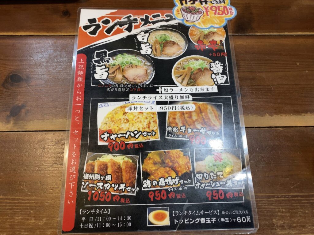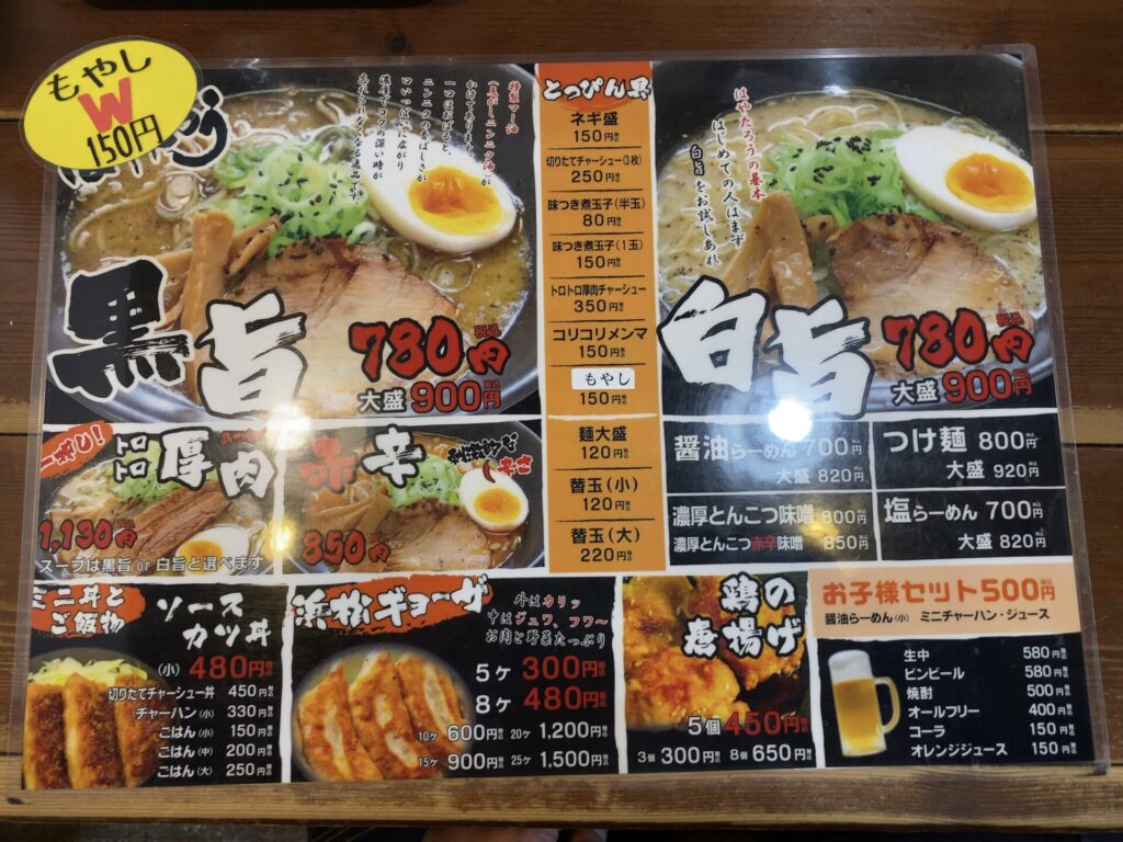 麺屋 はやたろうのメニューで「黒旨」か「白旨」か迷うも黒旨に決まり!トロトロ厚肉ってナニ!?と気付いたのはオーダー後・・・