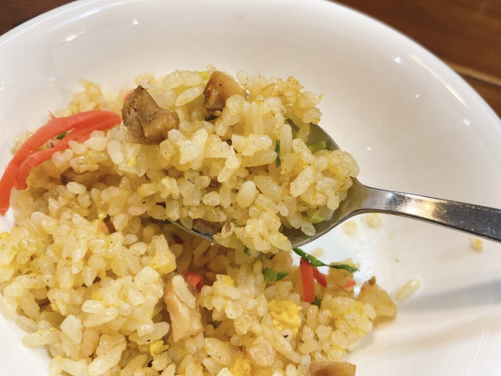 ラーメンが冷めないように、同時進行で食べていたチャーハンも、パラパラで味付けも私好み。