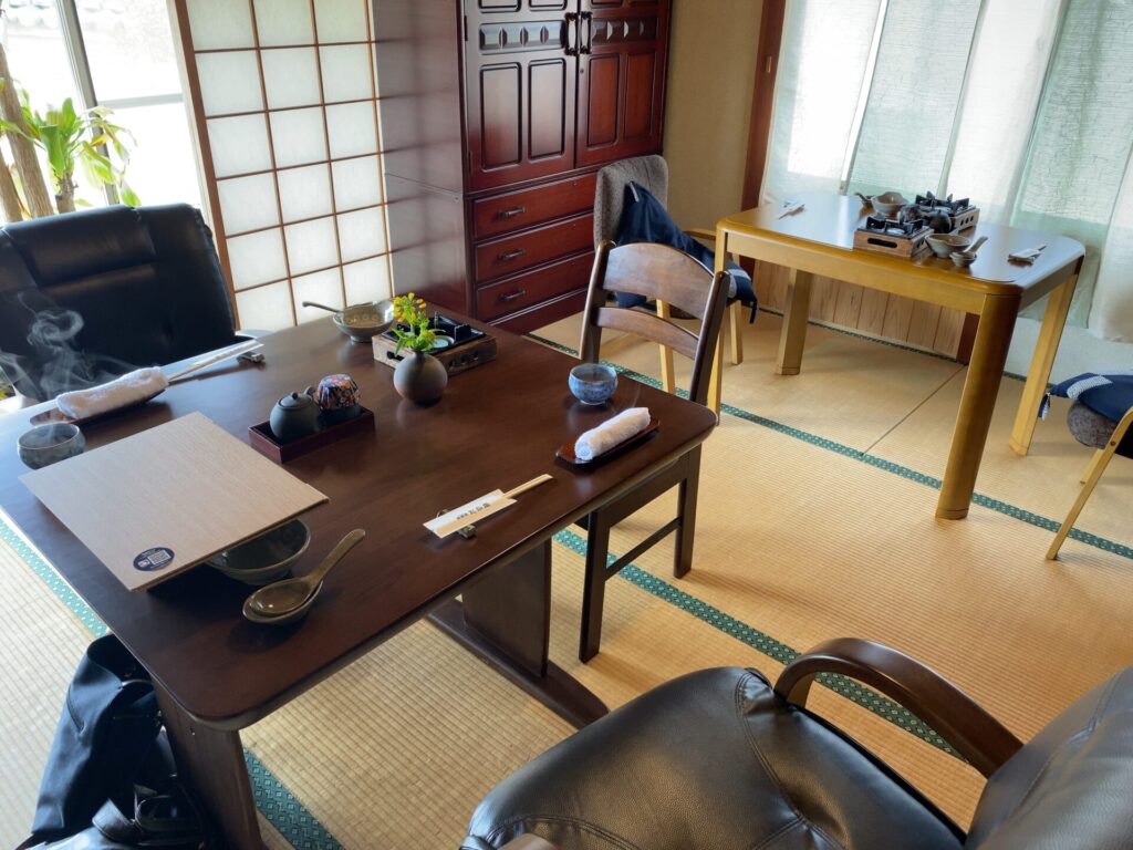 私はここ最近ちょっと膝痛があるもので、テーブル席をお願いしていて奥に案内されました。