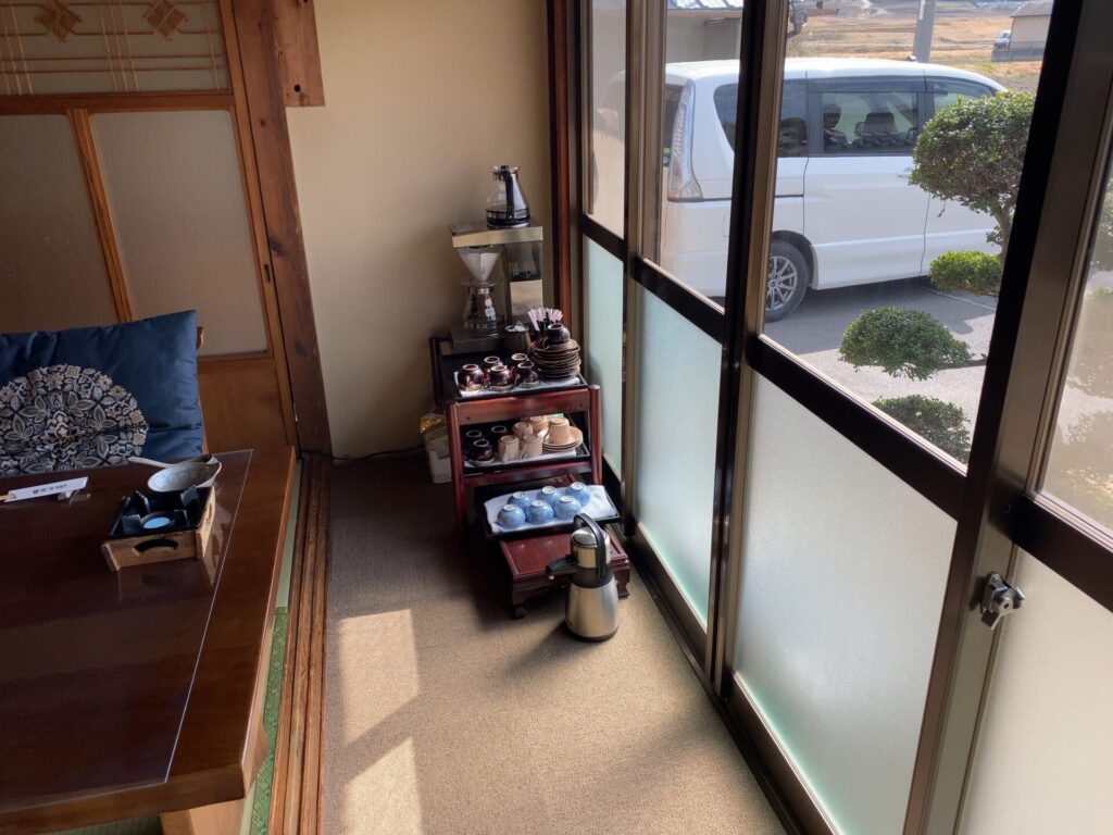 縁側にドリンクコーナー?がありますの、コチラで各自で入れて下さいね。