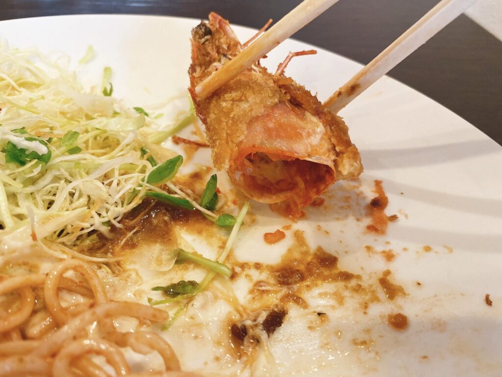 ここまでキレイに食べられるエビフライは、なかなか無いかと思います。