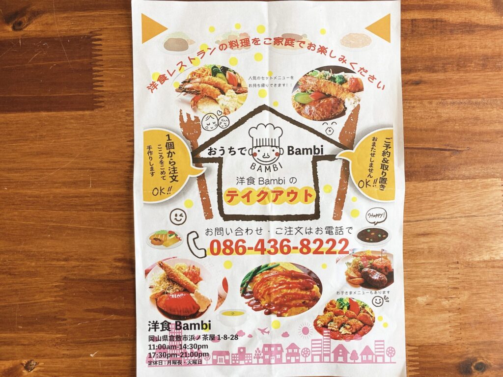 ※洋食バンビではテイクアウトもされていますので、問い合わせてみて下さいね。