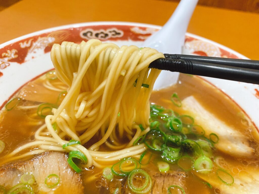 麺は中細のストレート麺ですが、喉越しもよくてスープとの相性もいいです。