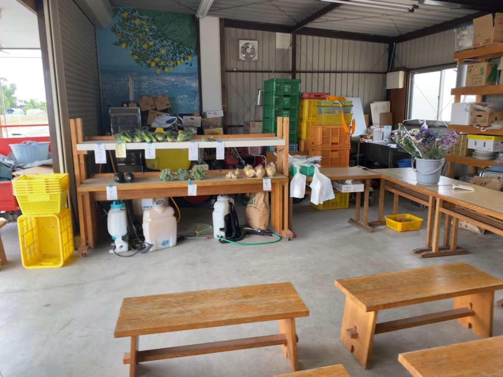 こちらには、野菜も売られていて、待つための?椅子も多くあります。