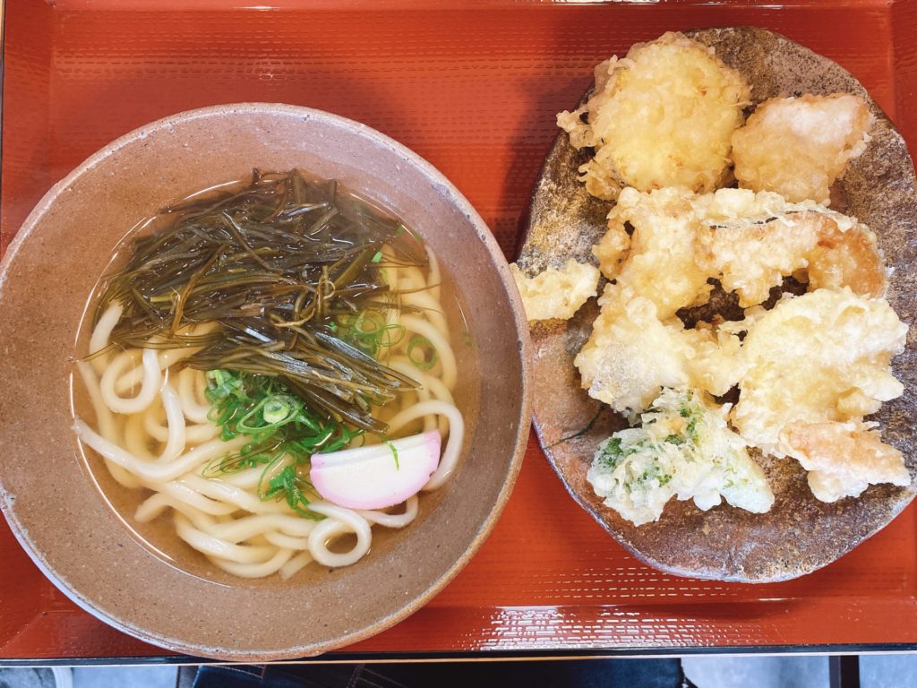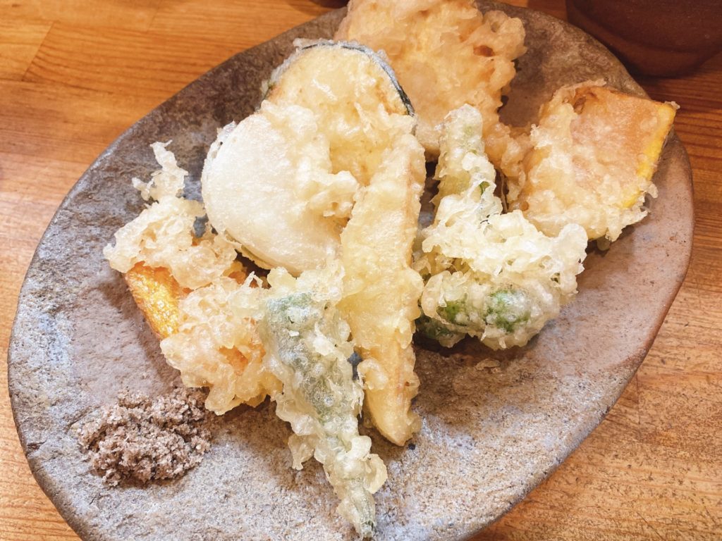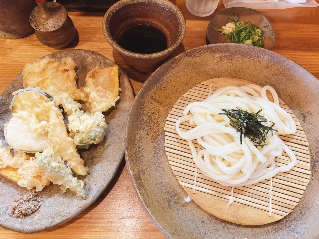 隠れた名店!?手打ちうどん みのりは麺と出汁の美味しさが抜群で、揚げたての野菜天ぷらと塩も最高!