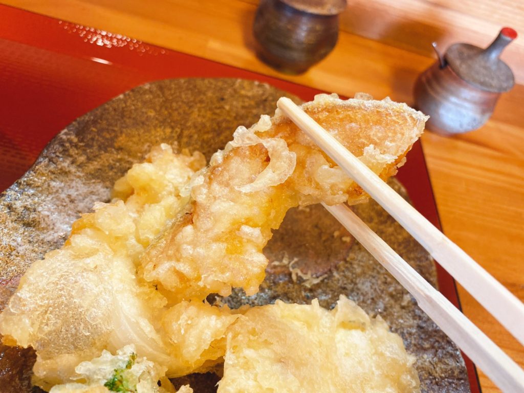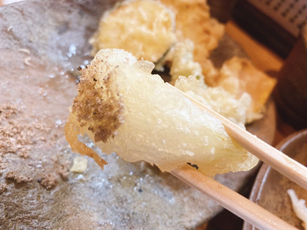 それはもう揚げたてで、サクサクの中熱々のフワフワで、野菜の旨味がジワっと出て来ます。