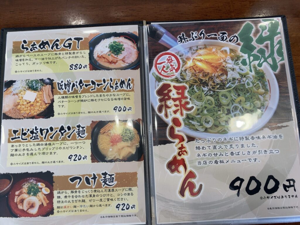とういうことで、店員さんに、「緑らぁめんお願いします」