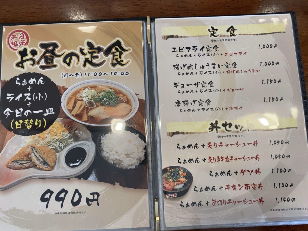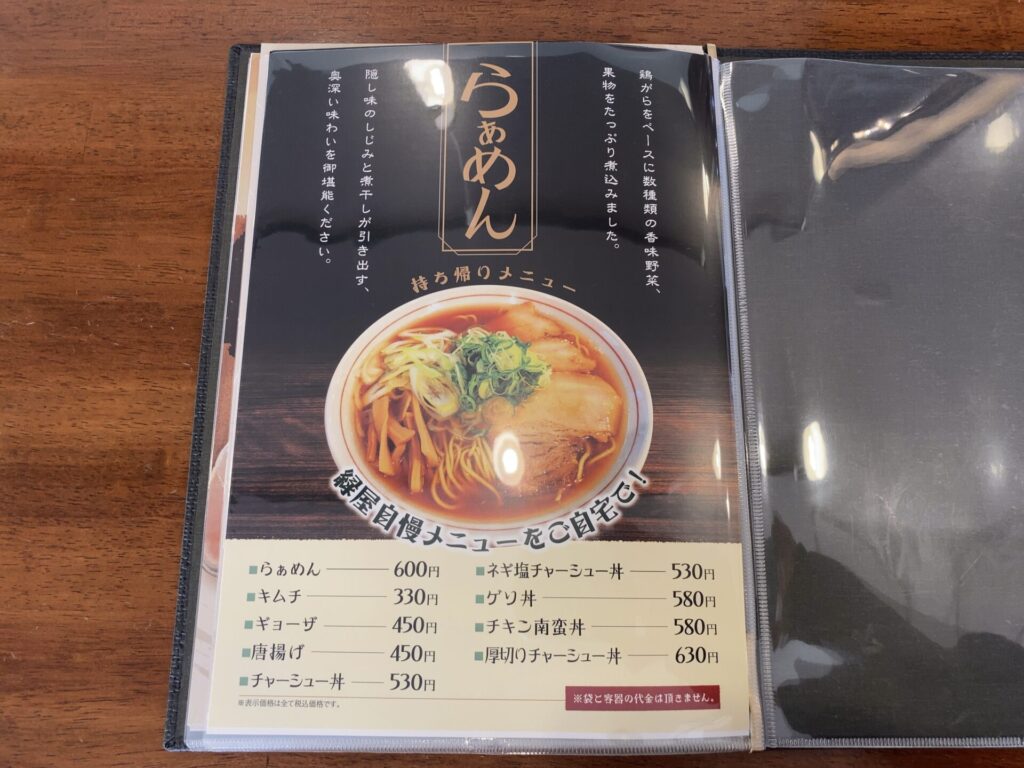 らぁめん緑屋のランチタイム、定食や丼のセットがガッツリいけそうながらも一番人気の緑らぁめんをオーダー!