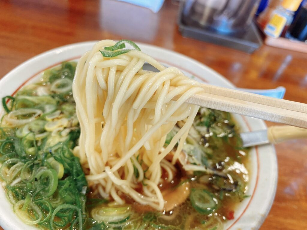 中細のストレート麺で、少し硬めですがちょうどいい加減です。
