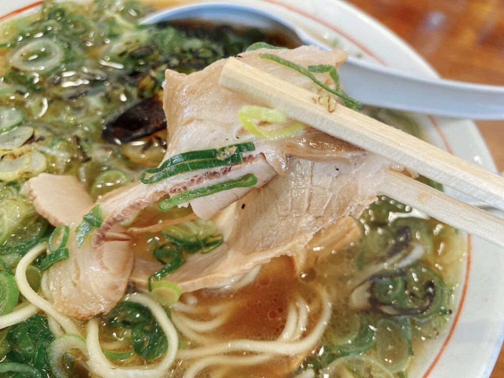 チャーシューはネギの下に隠れていましたが、ちょっと薄めです。